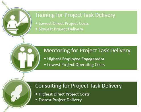 1. Training – Just-in-time knowledge transfer of the specific skills necessary for the project’s schedule, developing your staff’s internal capabilities, proficiency, and long-term capacity.